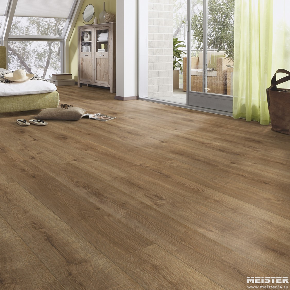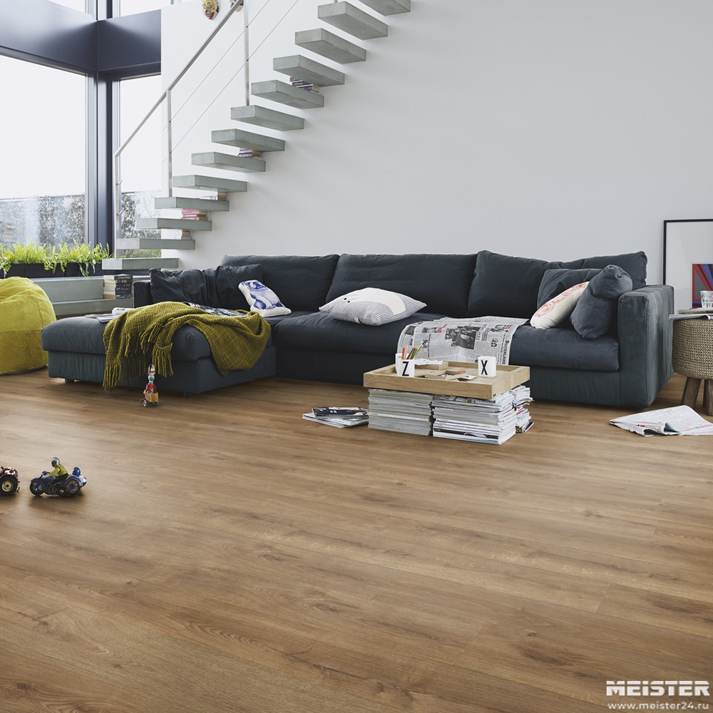 Ламинат Meister LD150 Дуб Амбер 7002 — это напольное покрытие, которое отличается высоким качеством и надёжностью. Он относится к 32 классу износостойкости, что означает, что его можно использовать как в жилых помещениях с высокой нагрузкой (например, в гостиной или детской комнате), так и в общественных помещениях со средней нагрузкой.