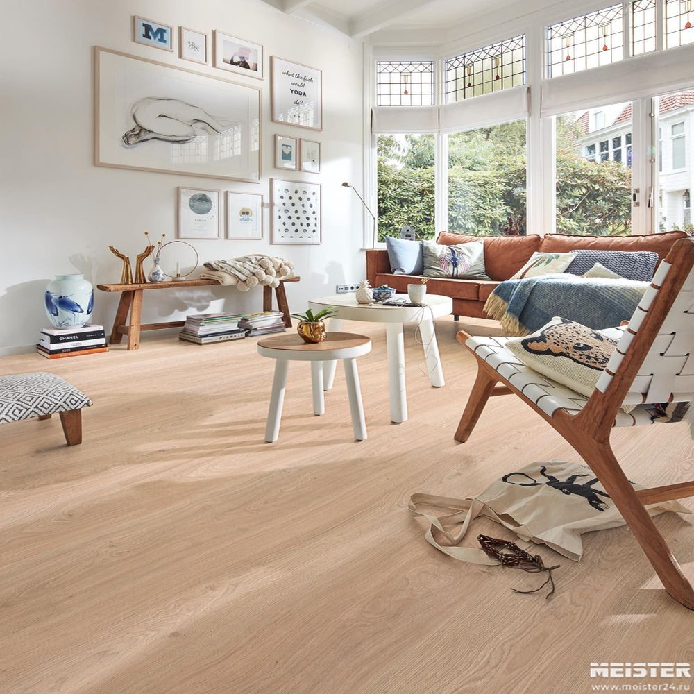 Цветовая палитра в натуральных оттенках дуба придаёт помещению теплоту и комфорт, а матовая поверхность создаёт ощущение уюта и спокойствия. Тиснение в регистр добавляет реалистичности рисунку, а однополосный дизайн с 4-сторонней фаской придаёт ламинату элегантный и стильный вид. Формат длинной и широкой доски подчёркивает простор и свободу пространства, делая интерьер более воздушным и светлым. Водостойкость ламината Meister LL150 позволяет использовать его в помещениях с повышенной влажностью, а возможность применения с тёплым полом до температуры +28 °C делает его ещё более универсальным решением для создания комфортного микроклимата в доме или офисе.