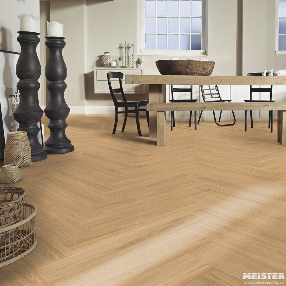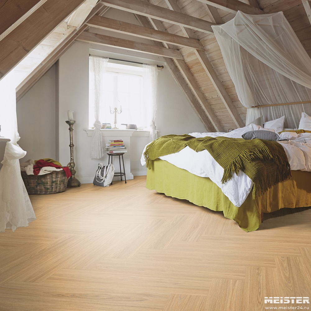 Meister LS350 Дуб Сэнд Принсес 6895 отличается натуральным внешним видом, имитирующим текстуру и рисунок дуба. Матовая поверхность ламината добавляет уюта и комфорта в помещение, а тиснение в регистр создаёт эффект натуральности и рельефности. Дизайн «ёлочка» и 4-сторонняя фаска придают ламинату элегантный и стильный вид.