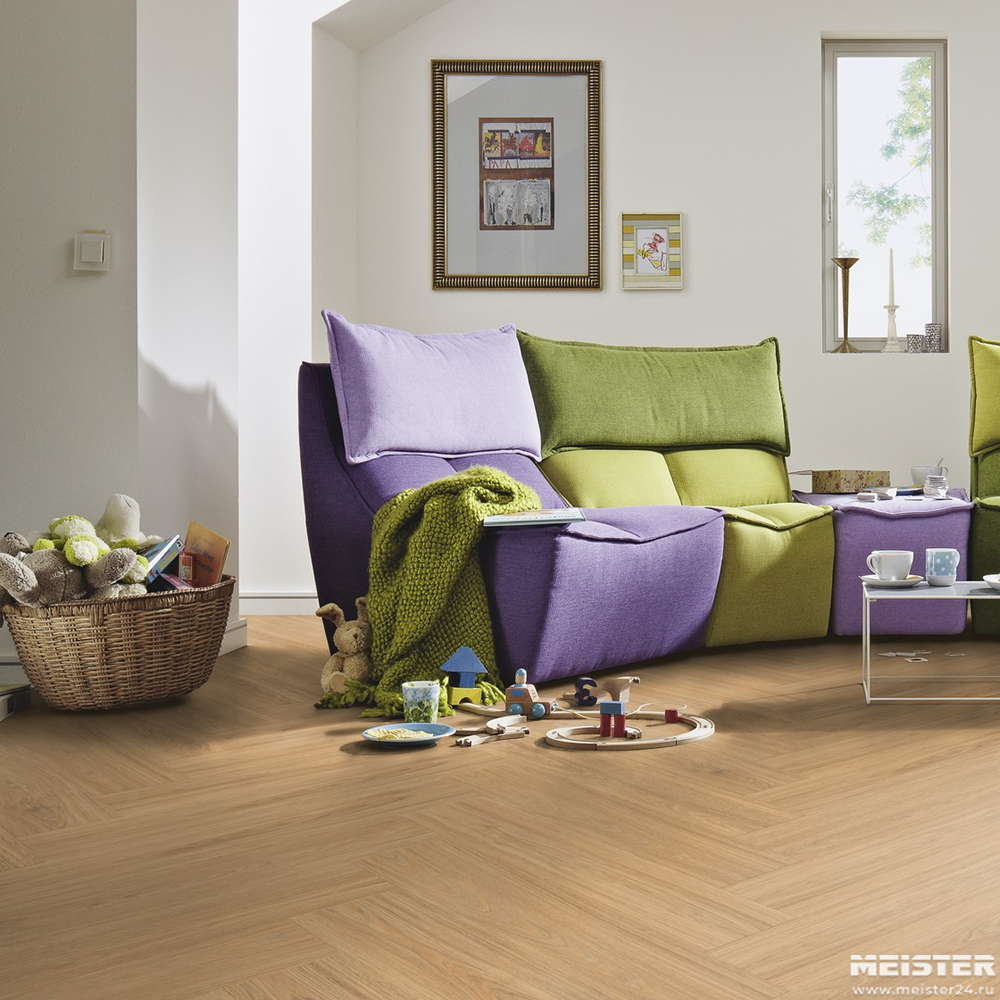 Благодаря толщине доски в 10 мм, ламинат Meister LS350 обладает хорошей звукоизоляцией и устойчивостью к механическим повреждениям. Водостойкость покрытия позволяет использовать его в помещениях с повышенной влажностью, хотя и не рассчитана на длительный контакт с водой.
