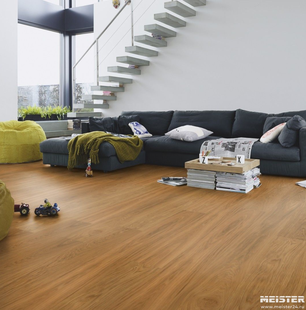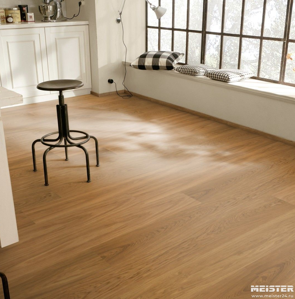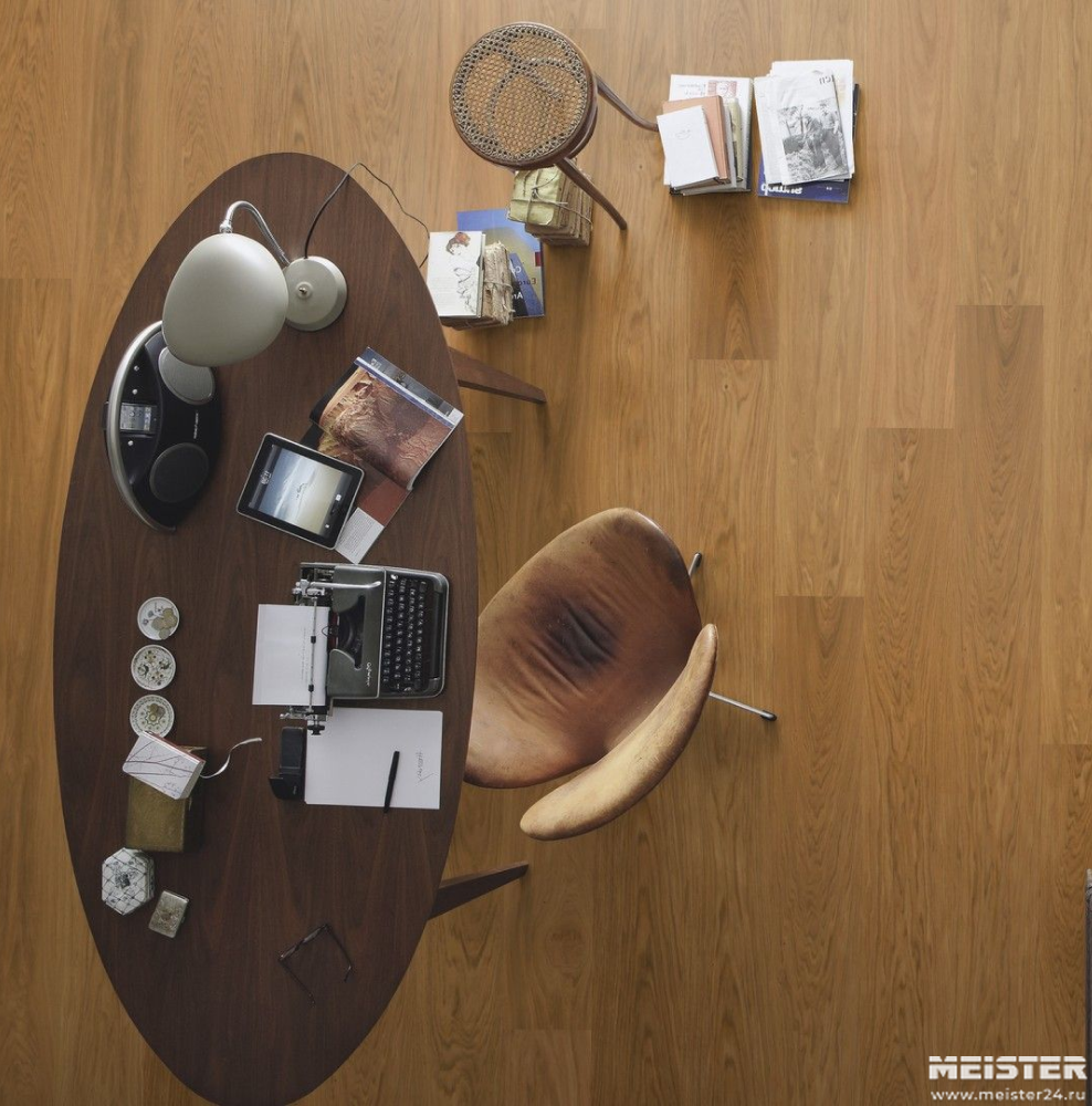 Монтаж паркетной доски Meister Дуб гармония Шартенальм 8830 не составит труда. Замки Masterclic Plus обеспечивают легкое и надежное скрепление досок между собой. Также возможно клеевое крепление паркетной доски к основанию (см. инструкции по укладке и по выбору клея).