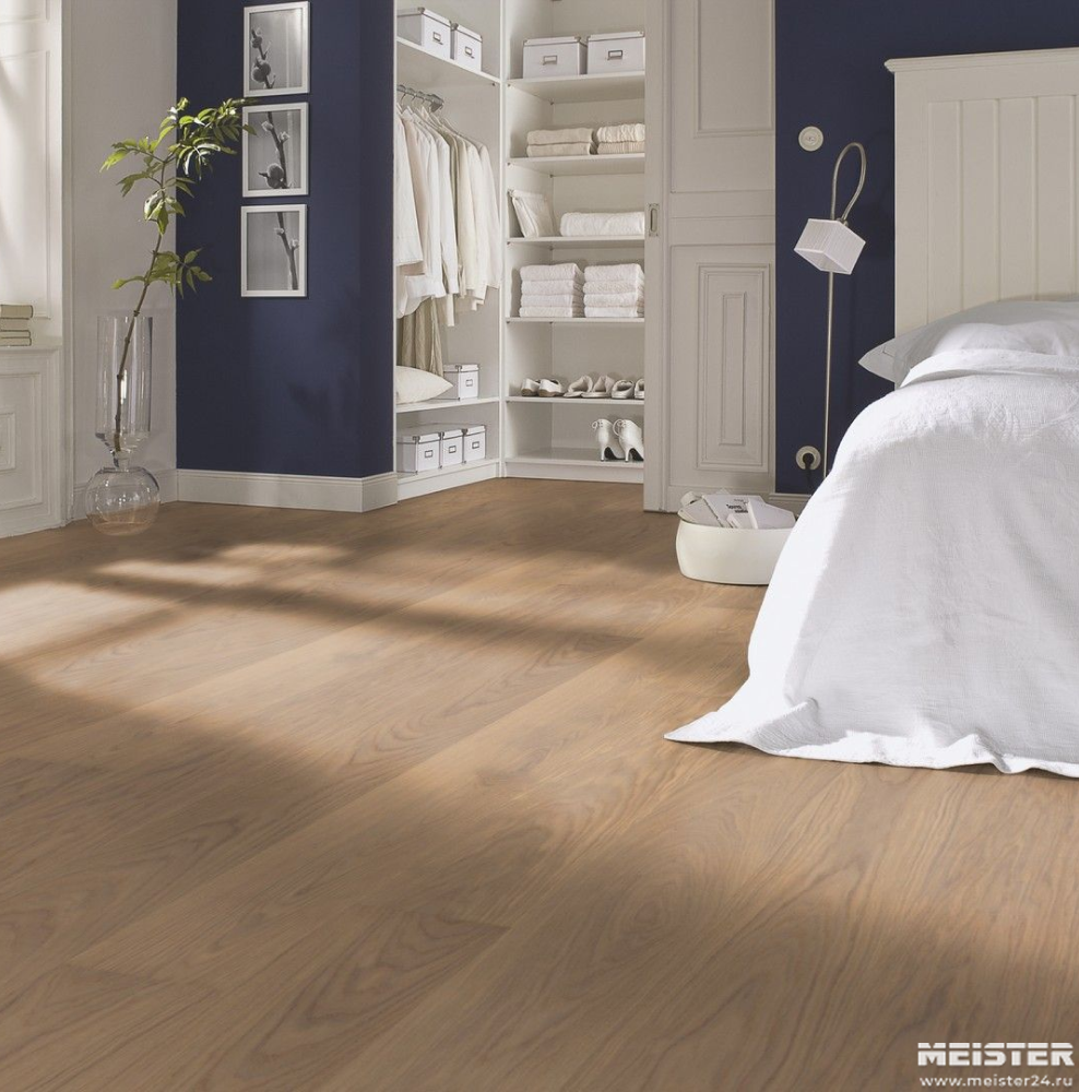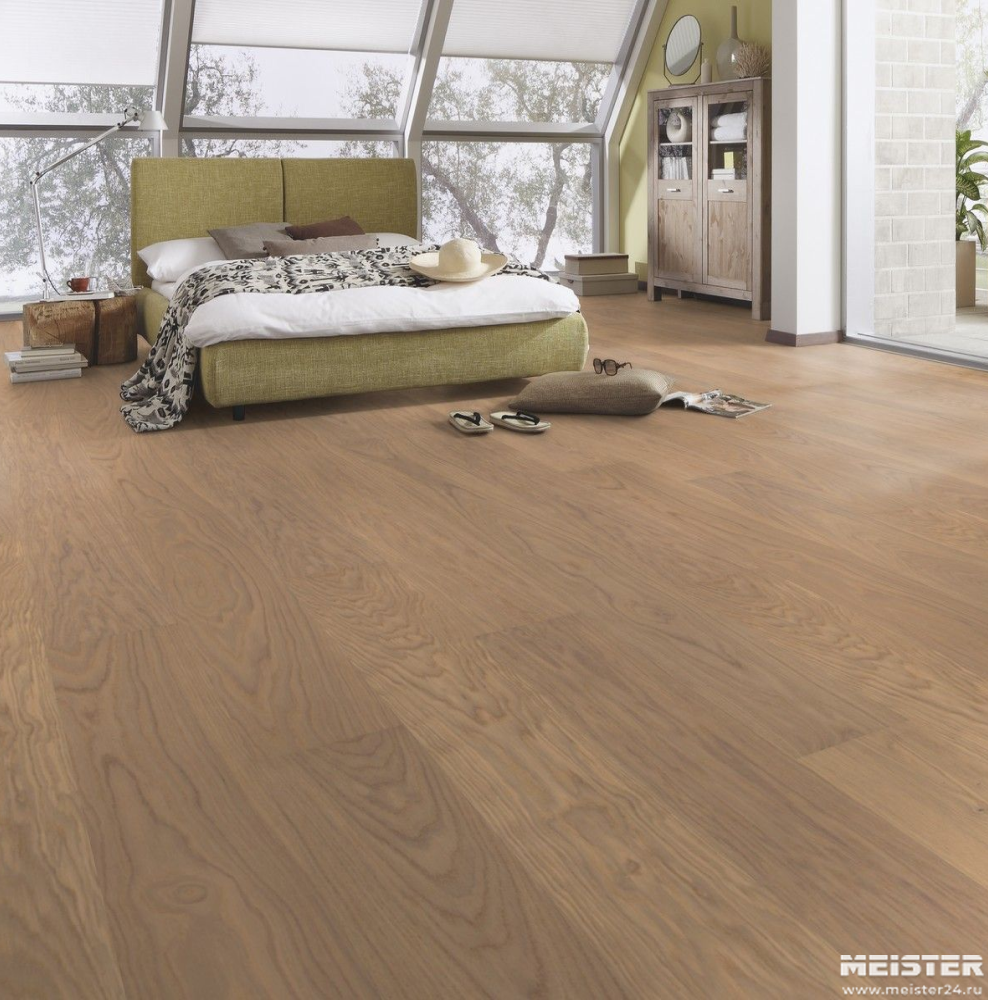 Монтаж паркетной доски Meister Дуб гармония Штубенальм 8832 не составит труда. Замки Masterclic Plus обеспечивают легкое и надежное скрепление досок между собой. Также возможно клеевое крепление паркетной доски к основанию (см. инструкции по укладке и по выбору клея).