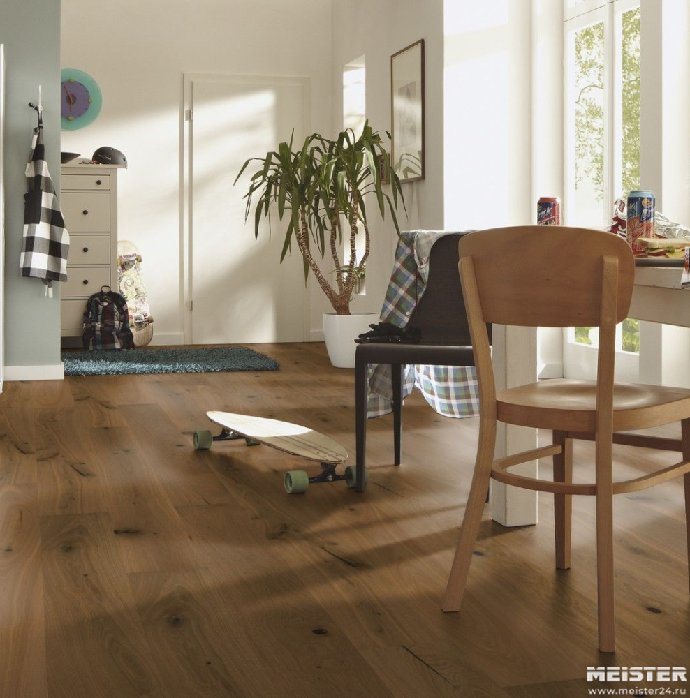 Монтаж паркетной доски Meister Дуб витал Брандеральм 8835 не составит труда. Замки Masterclic Plus обеспечивают легкое и надежное скрепление досок между собой. Также возможно клеевое крепление паркетной доски к основанию (см. инструкции по укладке и по выбору клея).