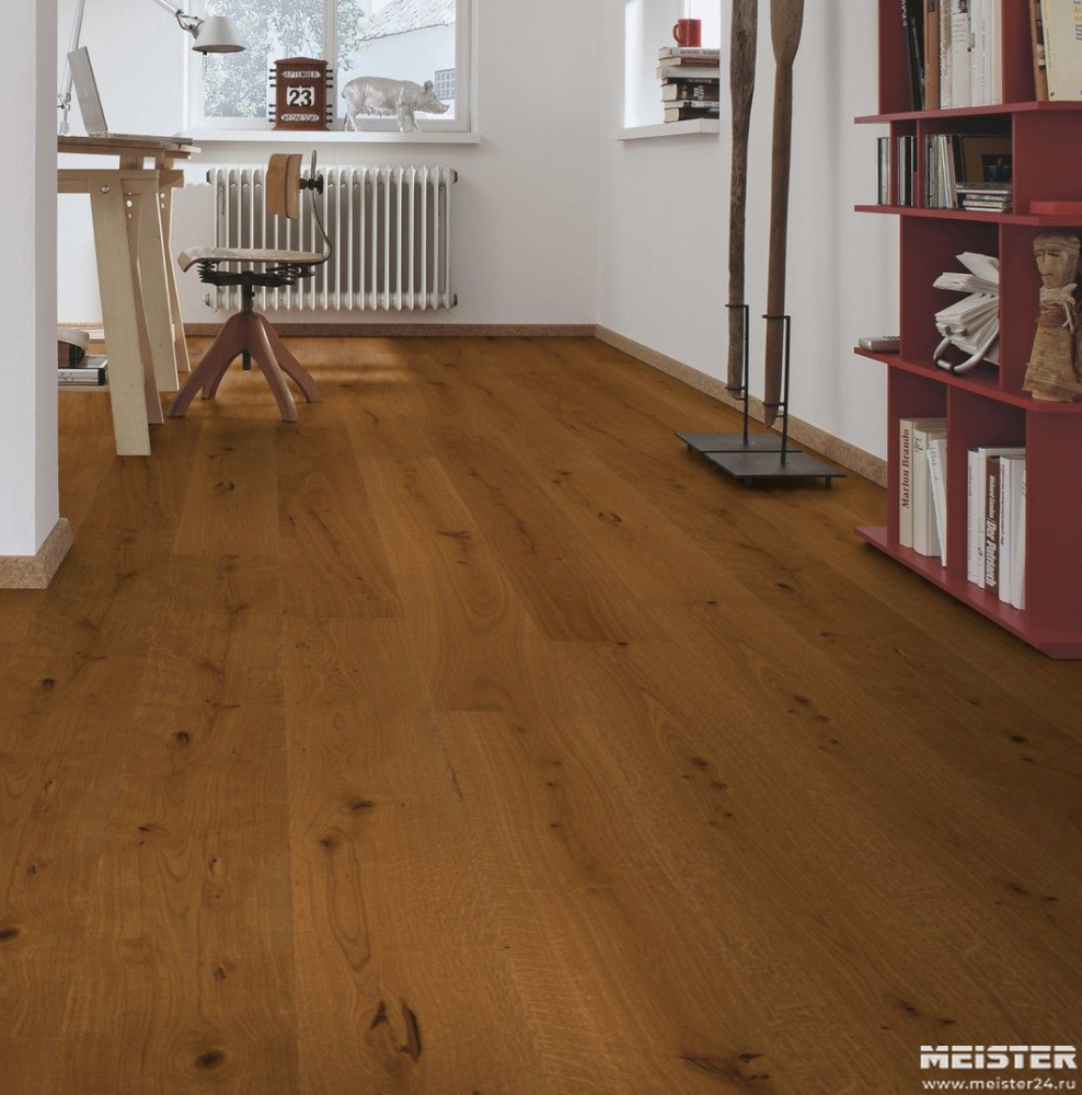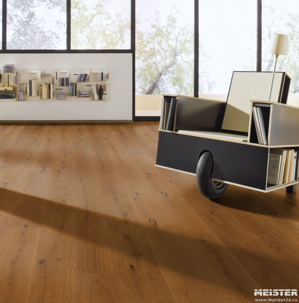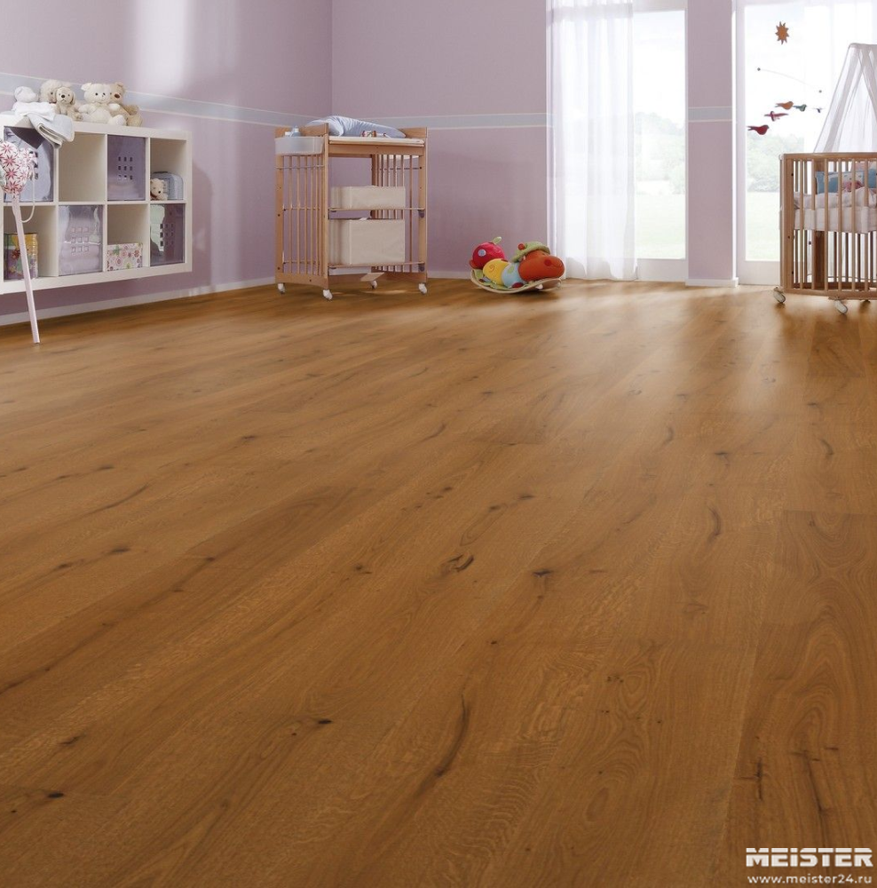 Монтаж паркетной доски Meister Дуб витал Конигстальм 8837 не составит труда. Замки Masterclic Plus обеспечивают легкое и надежное скрепление досок между собой. Также возможно клеевое крепление паркетной доски к основанию (см. инструкции по укладке и по выбору клея).