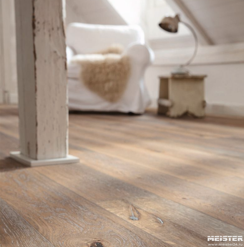 Монтаж паркетной доски Meister Дуб витал Миттеральм 8840 не составит труда. Замки Masterclic Plus обеспечивают легкое и надежное скрепление досок между собой. Также возможно клеевое крепление паркетной доски к основанию (см. инструкции по укладке и по выбору клея).