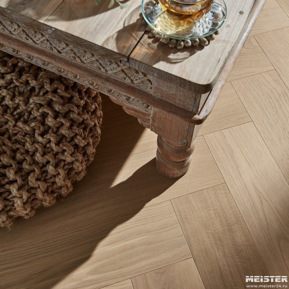 Цена указана за 1 м2. Толщина 13 мм, укладка елочкой, покрытие натуральное масло, оттенок светло-коричневый, с защитой от царапин, есть небольшая фаска. Размер доски 710*142 мм. В упаковке 8 досок, 0,807 м2.