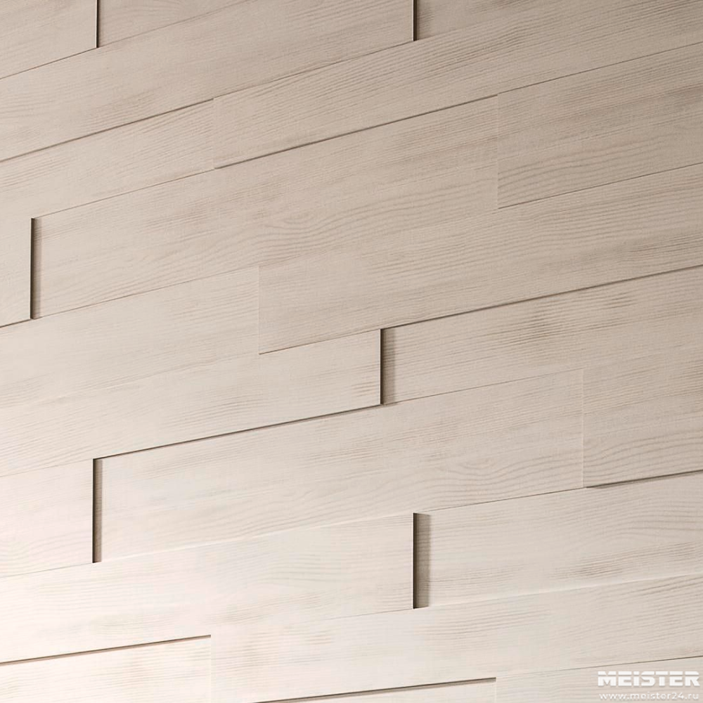 Стеновые панели Meister Panels White Pine 4005 из коллекции NOVA SP300 выполнены в 3D формате. Объемный рисунок в оттенках беленого дерева помогает создать уютную атмосферу в любой комнате. Отлично подойдет как для спальни или гостиной, но и для помещений с повышенной влажностью - для кухни или ванной комнаты.